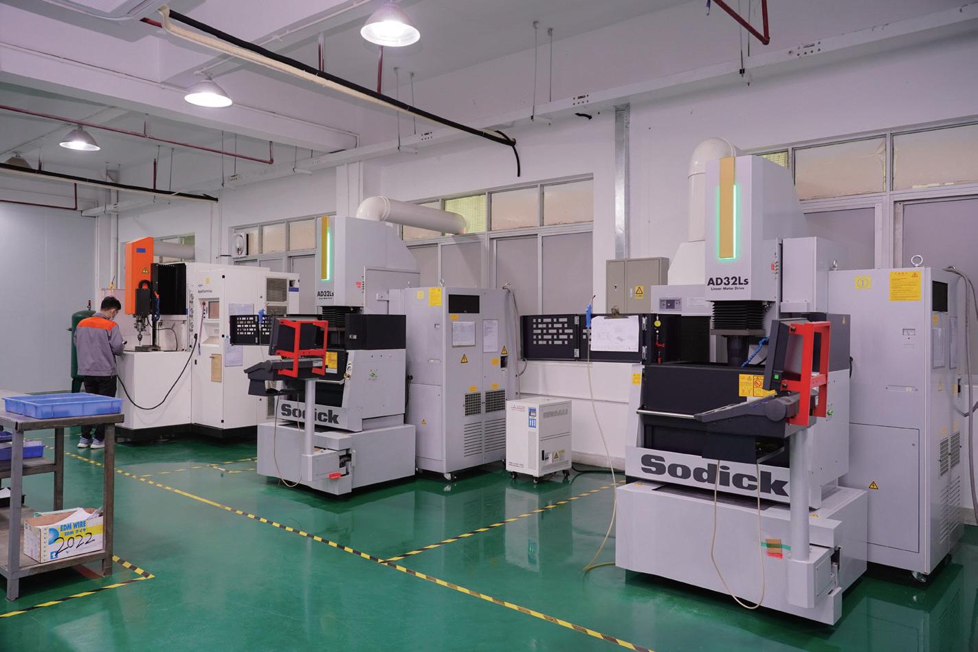 Nossas instalações abrigam mais de 50 máquinas de moldagem por injeção avançadas (variando de força de fixação de 50T a 500T), além de fresamento CNC, EDM e equipamentos de corte de fio. Isso nos permite criar moldes com geometrias complexas, recortes e recursos multifuncionais.