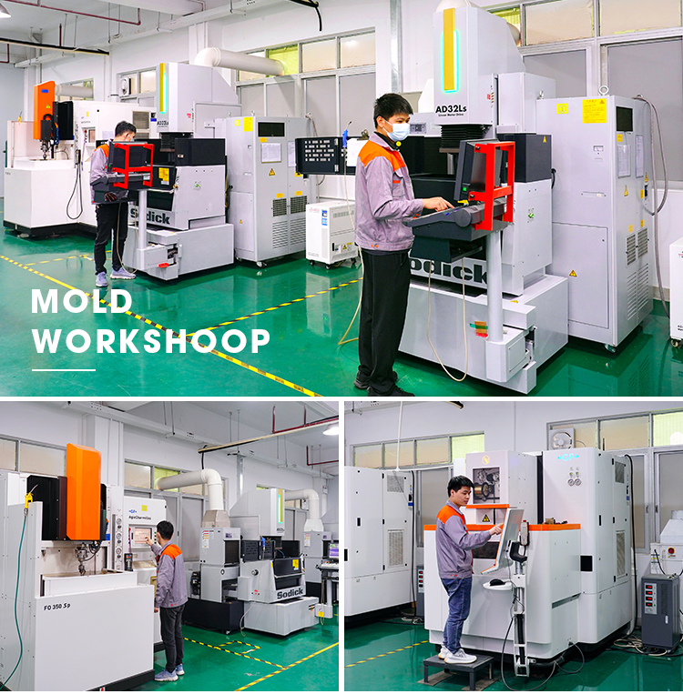 Tecnologia avançada: equipada com máquinas CNC de alta velocidade, EDM, EDM de arame e máquinas de moldagem por injeção que variam de 50t a 3000T, garantimos uma fabricação de moldes eficiente e precisa.