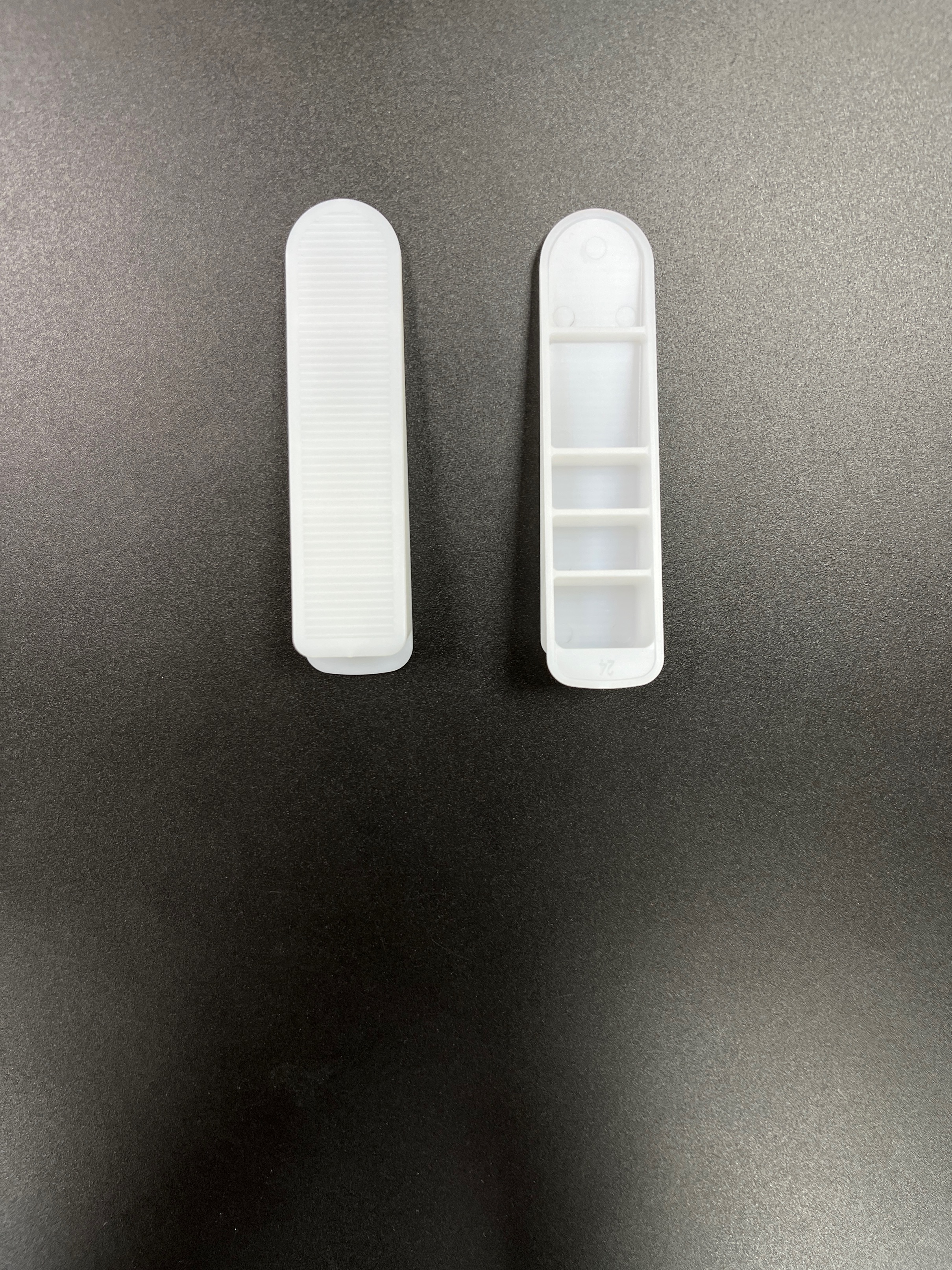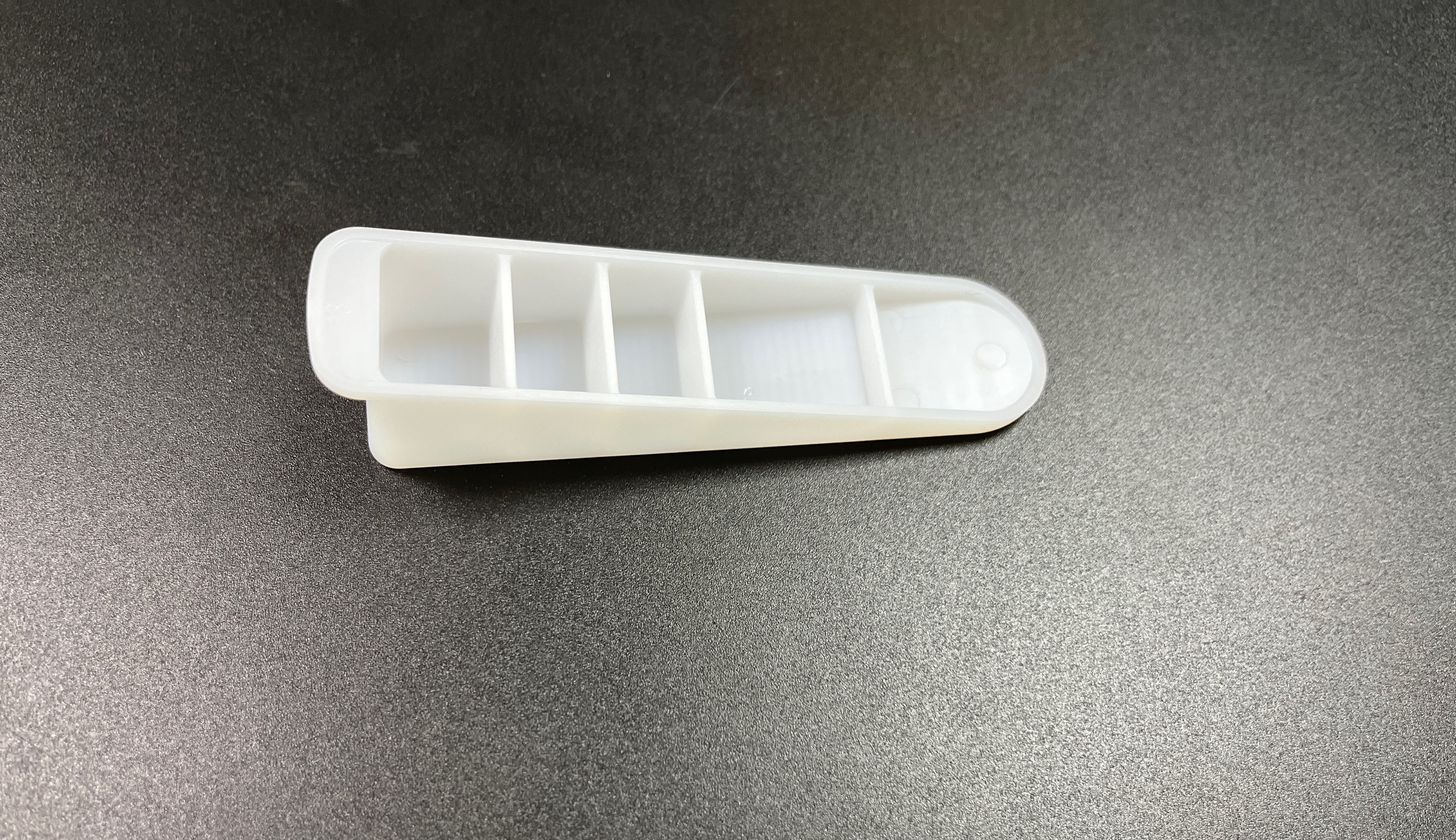 Recipientes de armazenamento para moldes de injeção de plástico com compartimentos separados e listras verticais brancas