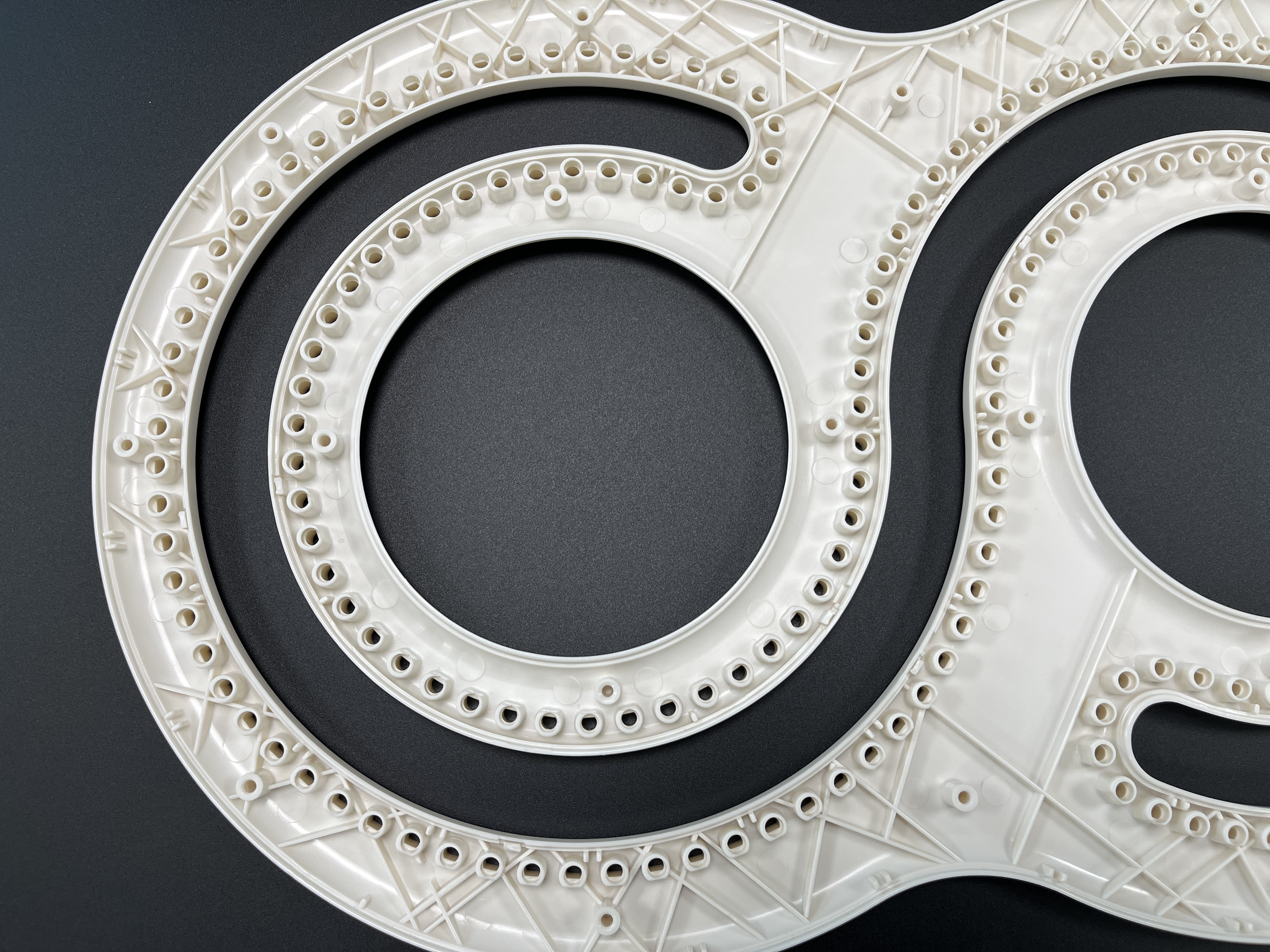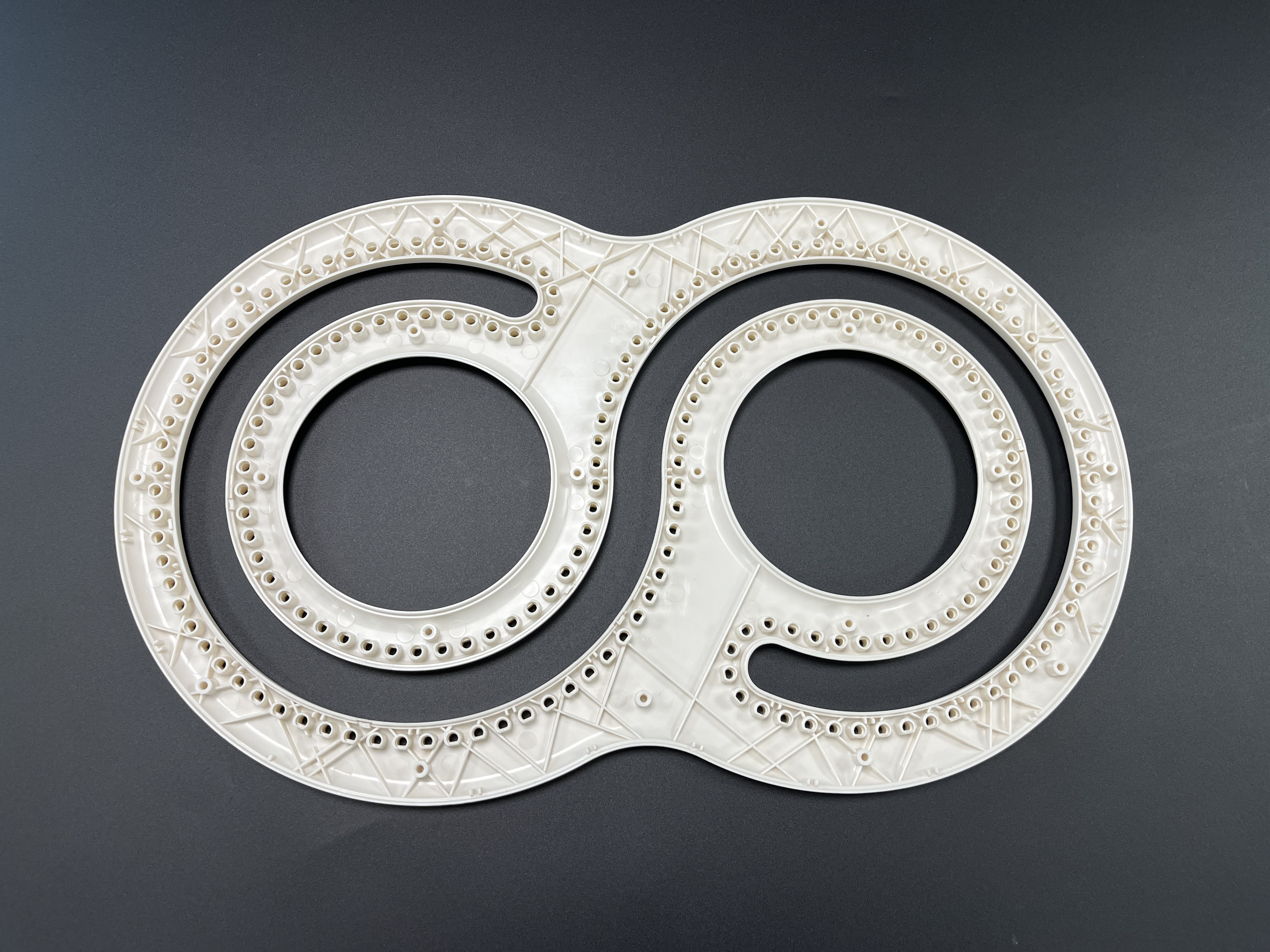 Design de anel duplo: O formato em forma de 8 fornece duas superfícies de tecelagem independentes, permitindo criar tecidos extralargos ou trabalhar em dois projetos simultaneamente.